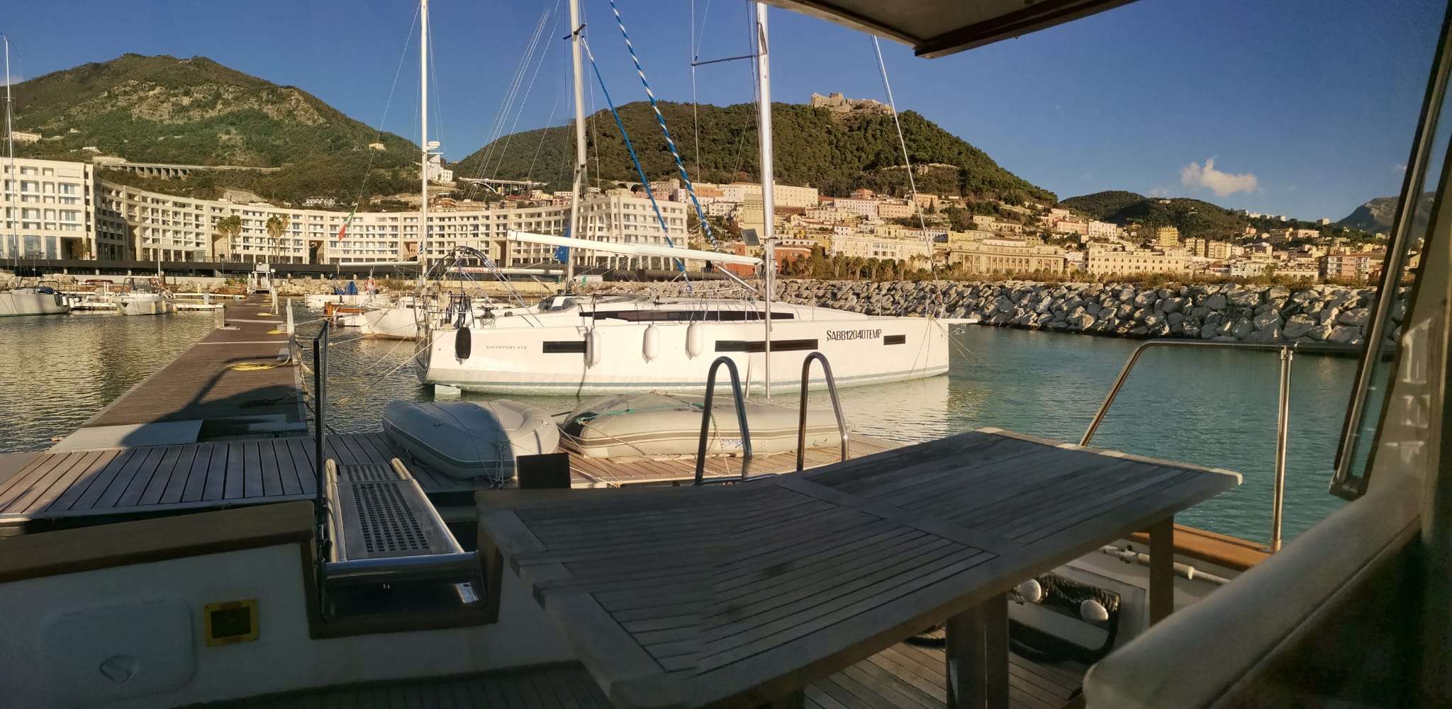 Ospiti coccolatissimi nel cuore della città, con numerosi servizi personalizzabili, compresi pranzi e cene a bordo, cerimoniali, massaggi e pratiche rilassanti, proiezione di film a bordo, escursioni nella Divina Costiera Amalfitana, e tanti altri anche a richiesta. Si alloggia ascoltando il dolce suono delle vele al vento nel pontile, magari assaporando piatti prelibati della Divina Costiera Amalfitana, e si dorme cullati dal lento ondeggiare del mare...