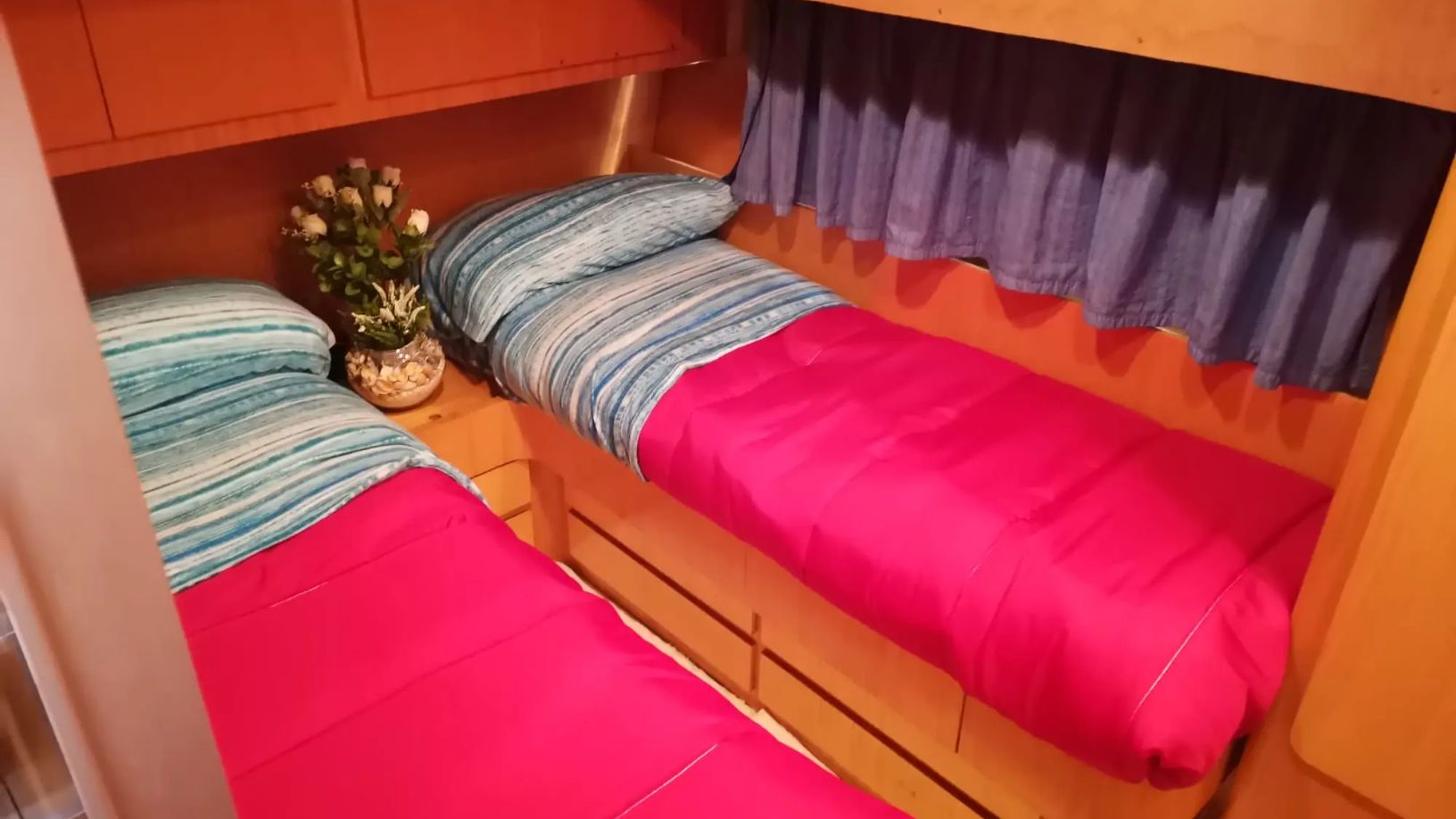 Trasformabile in letto per bambini, accanto alla dinette matrimoniale per adulti. In occasione di pranzi o cene possono accomodarsi fino a 14-15 persone ai tavoli adiacenti derivanti dalle due dinette affiancate. Possibili, quindi, ricevimenti con amici e parenti.