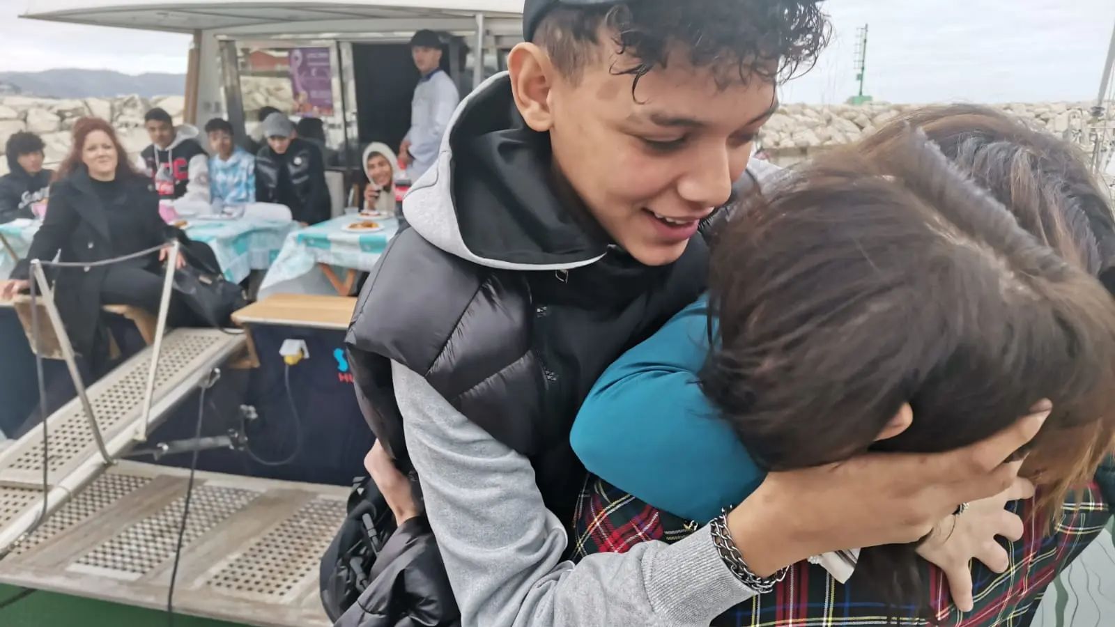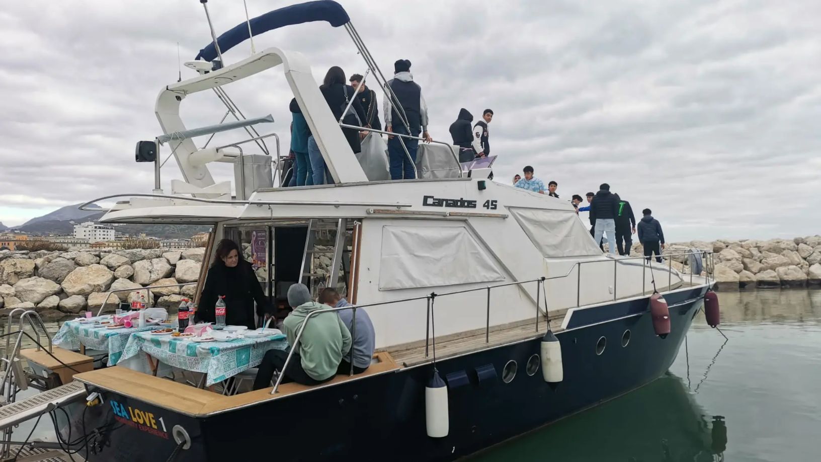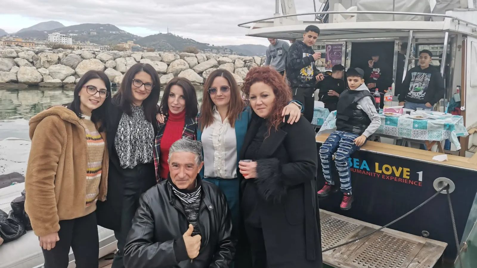 Atmosfera entusiasta che impone abbracci sfrenati, elargiti dai RAGAZZI RIFUGIATI alle d.sse Guida e Borsa, meritevoli di aver donato loro il pranzo di Natale 2023 a bordo della SEA LOVE 1.