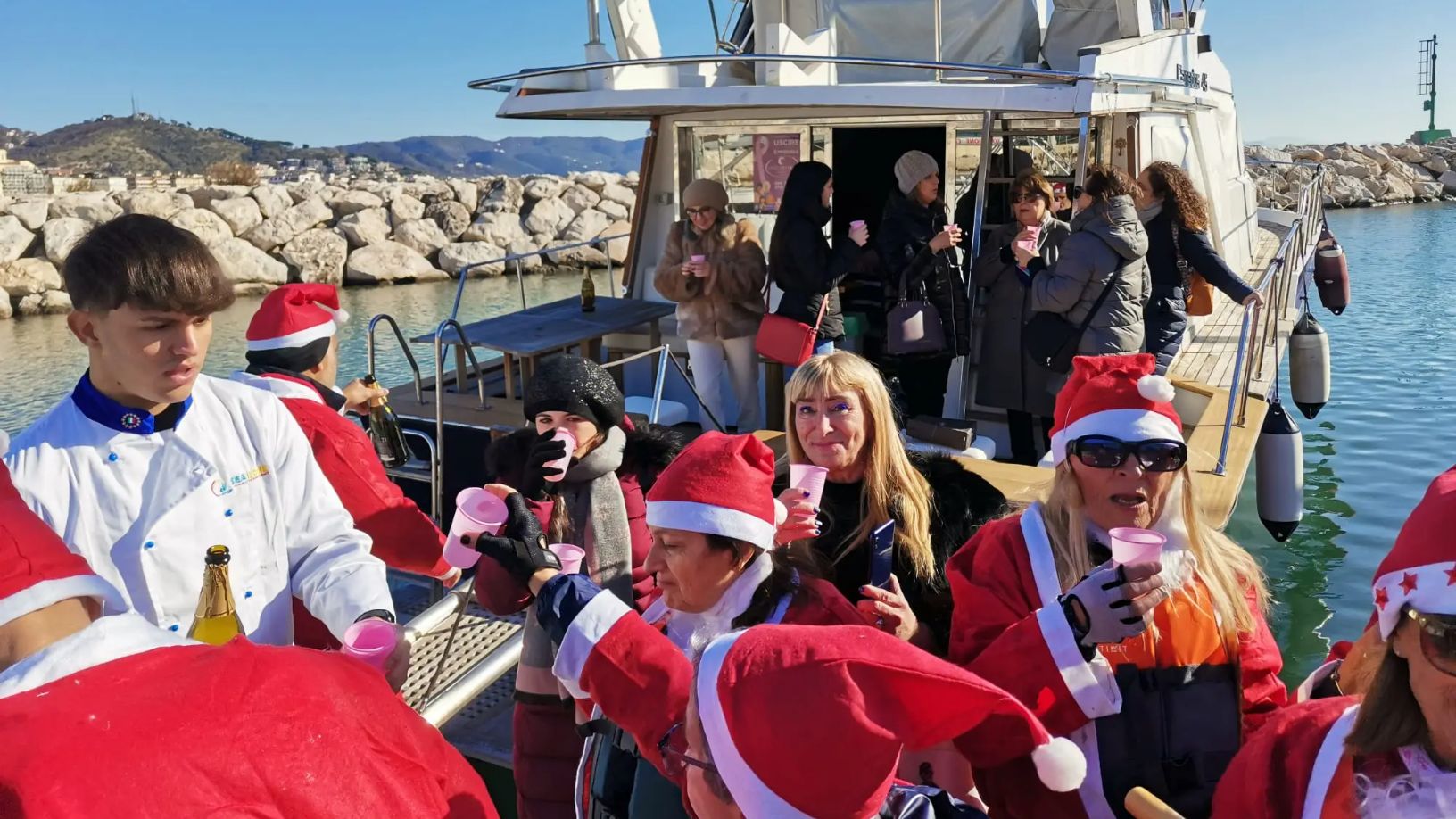 Presenti anche i Babbo Natale che erano partiti dal pontile per recarsi alla spiaggia di Santa Teresa per un evento collaterale.